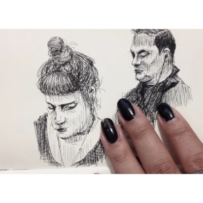 Sketching people on the train.
